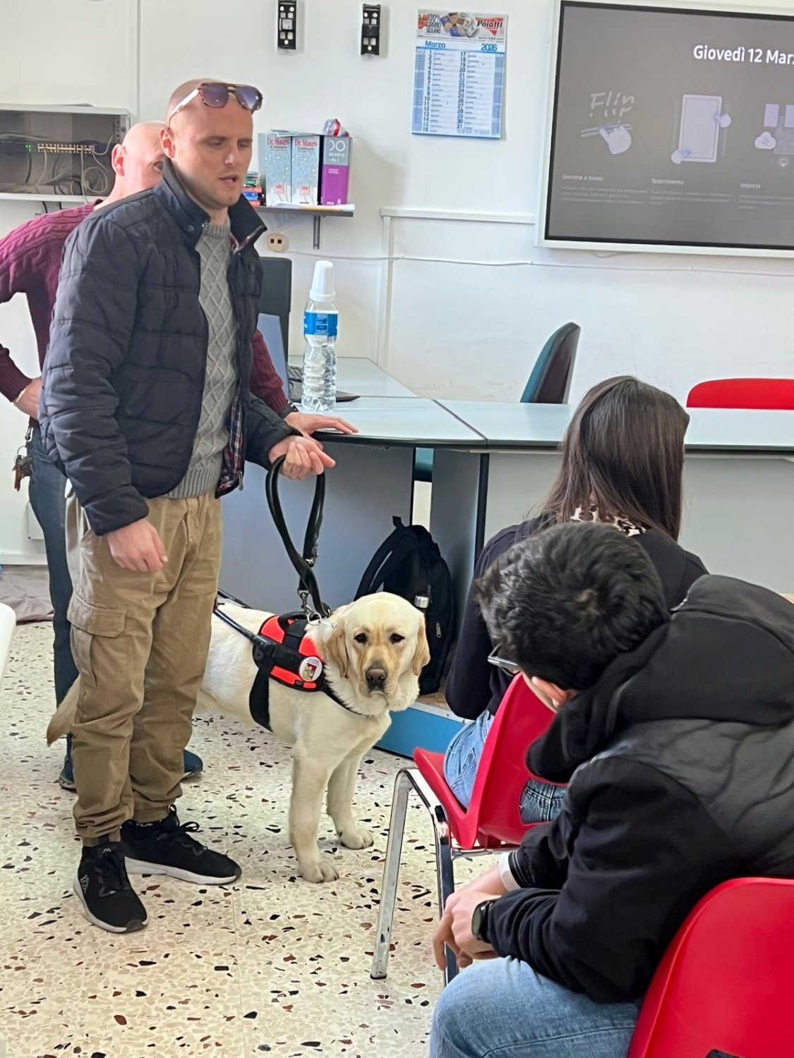 Particolarmente significativa la presenza di un cane guida addestrato, che ha permesso agli studenti di osservare da vicino il supporto concreto che questi animali garantiscono alle persone con disabilità visiva, favorendone autonomia e mobilità nella vita quotidiana.