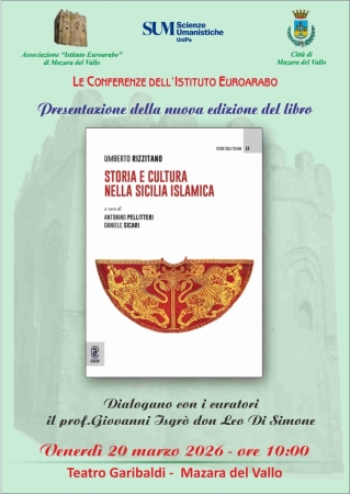 Venerdì 20 marzo alle ore 10 il Teatro Garibaldi di Mazara del Vallo ospiterà la presentazione della nuova edizione del libro “Storia e Cultura nella Sicilia Islamica” del professor Umberto Rizzitano. L’iniziativa rientra nel ciclo “Le Conferenze dell’Istituto EuroArabo”.
