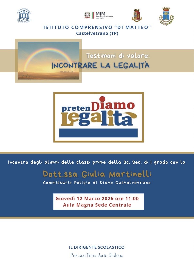 L’iniziativa rientra nella IX edizione del progetto nazionale “PretenDiamo Legalità”, promosso dal Ministero dell’Interno in collaborazione con il Ministero dell’Istruzione e del Merito, con l’obiettivo di diffondere tra i giovani il rispetto delle regole e i principi della cittadinanza attiva.
