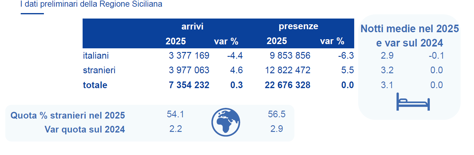 Altro dato chiave: i turisti stranieri sono sempre più importanti, ma in Sicilia spendono meno rispetto alla media nazionale.