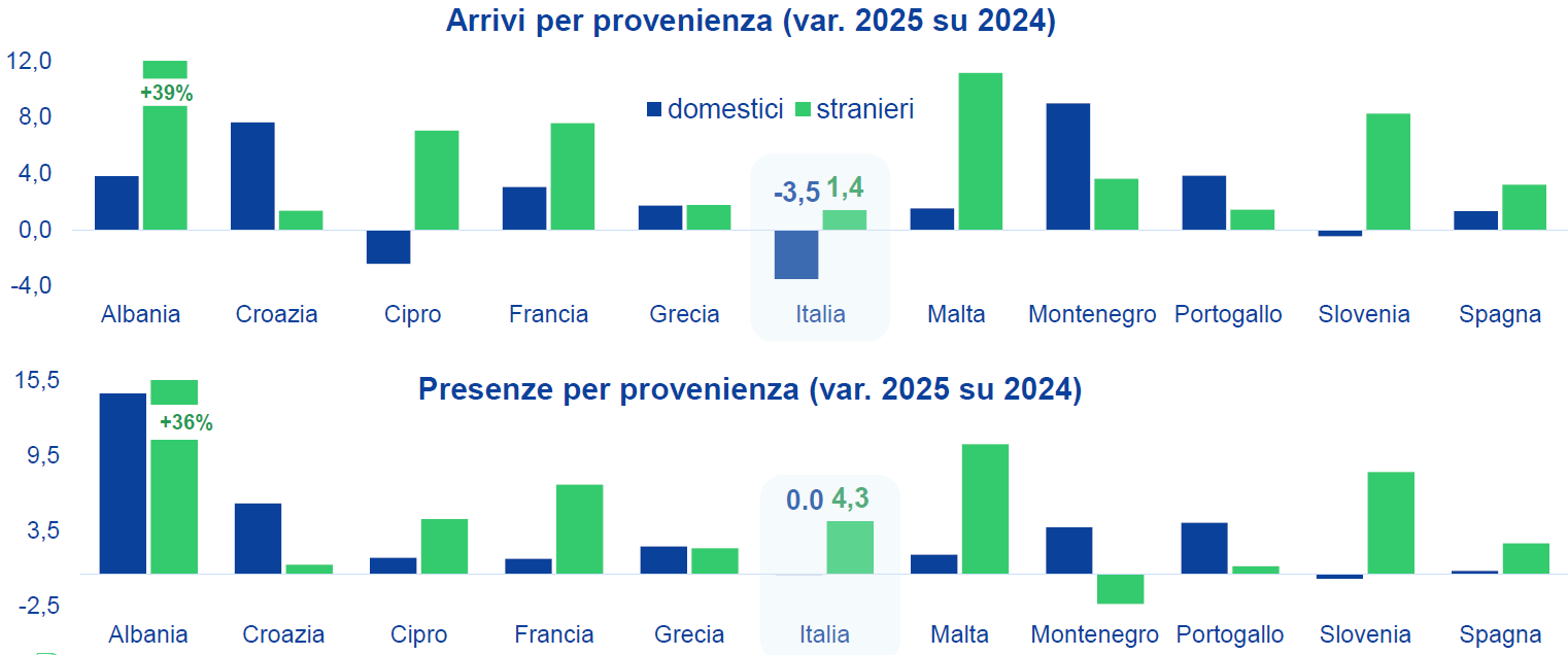 gli italiani sono in calo (arrivi -4,4%, presenze -6,3%)