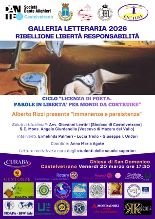 La parola come spazio di libertà e conoscenza. Venerdì 20 marzo alle ore 17.30, la Chiesa di San Domenico a Castelvetrano ospiterà il primo appuntamento del ciclo “Licenza di poeta. Parole in libertà per mondi da costruire”, inserito nella Galleria Letteraria 2026.