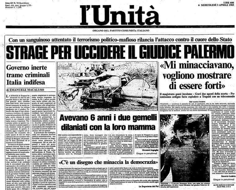 La mattina del 2 aprile 1985, alle 8:35, lungo la strada che da Bonagia porta a Trapani, un’autobomba attende il passaggio del sostituto procuratore Carlo Palermo. È un attentato preparato con cura, dentro una strategia che non è locale ma internazionale, fatta di traffici di droga, armi, relazioni che collegano Trapani a Trento, al Medio Oriente, all’Est Europa.