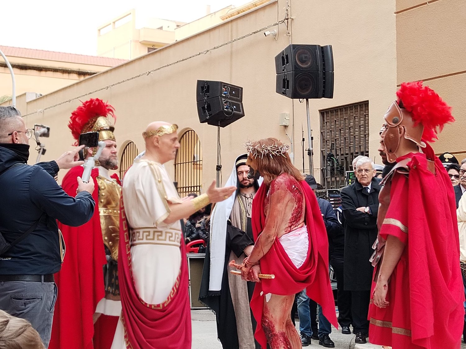 Arrivati in Piazza Francesco Pizzo, di fronte all’intensificarsi della pioggia, gli organizzatori – la Confraternità della Parrocchia di Sant’Anna, don Giacomo Marino e il direttore artistico Andrea Russo – hanno deciso di interrompere la Sacra Rappresentazione e far rientrare tutti i gruppi.
