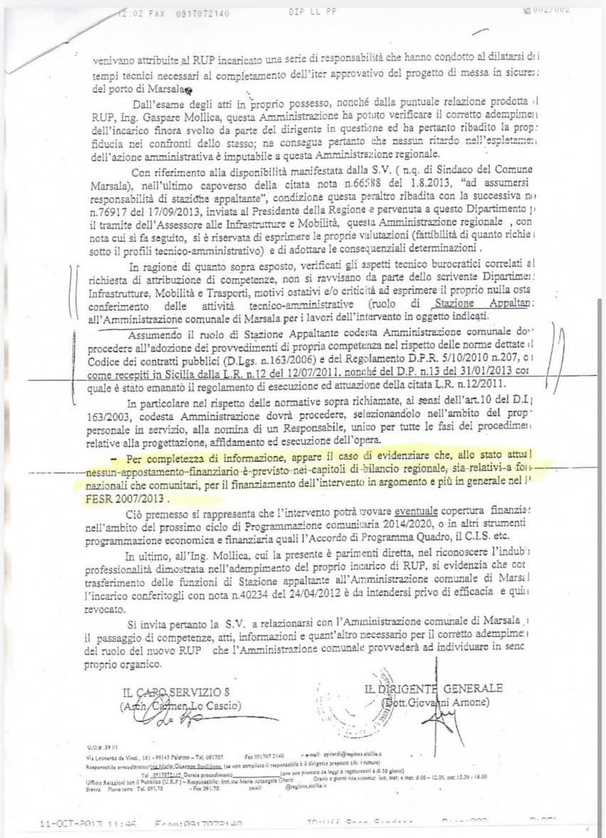 Il consigliere comunale Rino Passalacqua, candidato a sostegno di Andreana Patti sindaca, commenta un'intervista della Adamo sul porto: “A commento dell’intervista vi era una dichiarazione dell’On. Eleonora Lo Curto che commentava che per colpa dell’amministrazione di Girolamo tutto si è arenato, per il dovere di verità voglio raccontare ad entrambe le onorevoli la realtà dei fatti che trova nelle carte ufficiali riscontro alle loro menzognere dichiarazioni. Il famoso progetto pubblico di cui parla l’On. Adamo nell’ intervista non aveva nessuna copertura finanziaria e vi è una corrispondenza ufficiale tra l’assessorato regionale ed il comune di Marsala che lo testimonia e che allego adesso, poi si deve sapere che l’ iter del porto privato è naufragato perché in una delle ultime sedute della commissione (di cui faceva parte,il sindaco, la prefettura, la capitaneria e l’assessorato regionale al territorio) che controllava le varie fasi esecutive, un ingegnere dell’assessorato regionale, constatando che la Myr società affidataria del progetto privato, non aveva rispettato le scadenze dettate dall’accordo di programma da parecchi mesi, ha revocato tutto il procedimento dando alla Myr di Ombra la possibilità di fare ricorso a tale decisione, ricorso che non mi pare sia stato presentato! Queste notizie che vi racconto si trovano nei verbali di tale commissione che sono disponibili negli uffici comunali”.