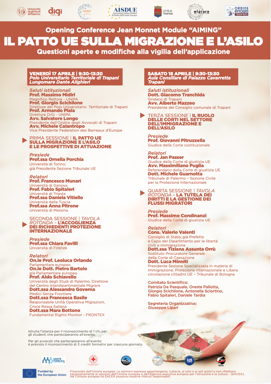 L’iniziativa, sostenuta anche dall’Associazione Italiana degli Studiosi del Diritto dell’Unione Europea, dal Comune di Trapani e dall’Ordine degli Avvocati, riunirà accademici, magistrati, rappresentanti delle istituzioni e operatori del settore per analizzare uno dei dossier più delicati dell’agenda europea: la riforma del sistema comune di asilo.