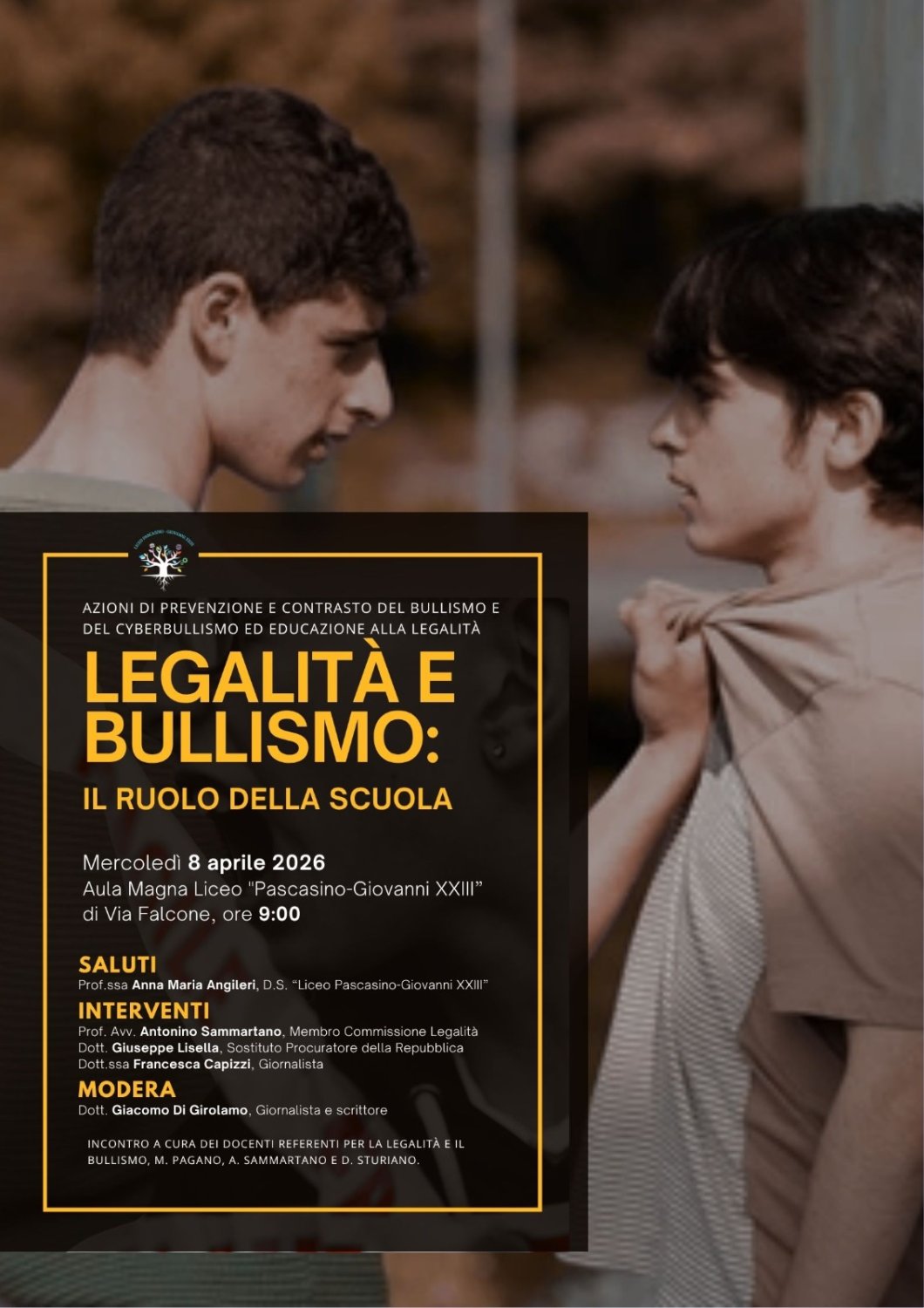 Non un incontro rituale, ma un tassello di un percorso educativo che va avanti da anni. Al liceo Pascasino-Giovanni XXIII di Marsala, oggi, si è parlato di bullismo e cyberbullismo con studenti, docenti ed esperti, mettendo al centro una parola chiave: responsabilità condivisa.