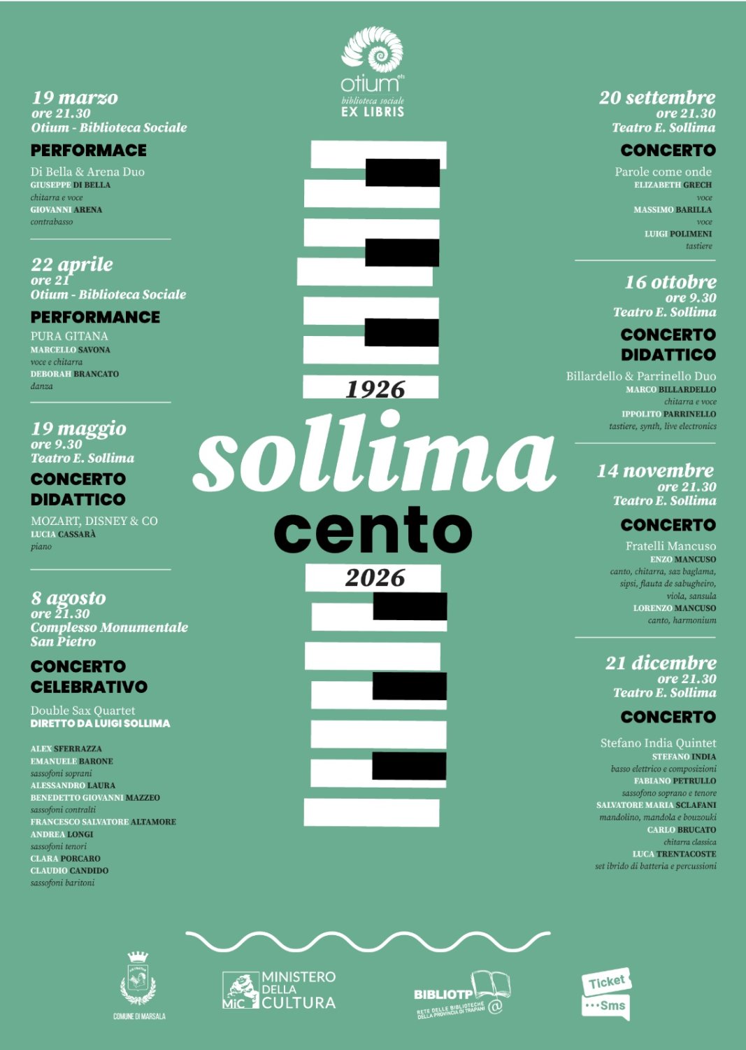 L’evento rientra nella rassegna “Sollima Cento”, dedicata al centenario del compositore marsalese Eliodoro Sollima, ed è organizzato dall’associazione culturale Otium, inserita nella rete BiblioTP e sostenuta dal Ministero della Cultura e dal Comune di Marsala.