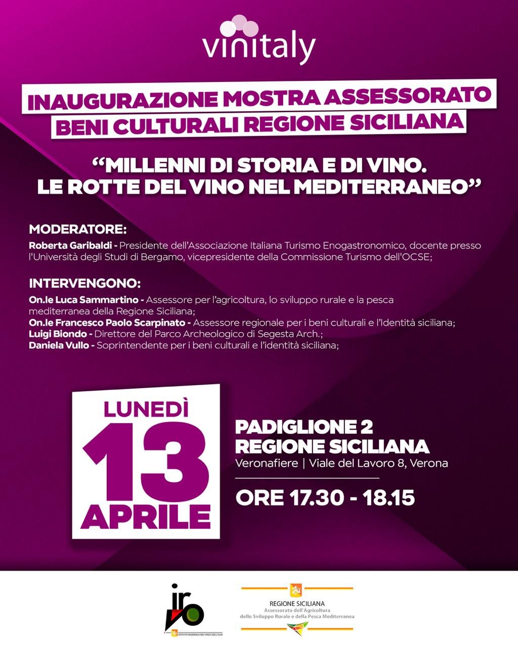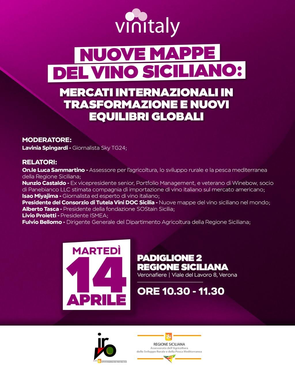 In occasione di Vinitaly, la Regione Siciliana sarà presente con un ricco calendario di appuntamenti dedicati a enogastronomia, cultura, enoturismo e comunicazione del vino. Gli eventi si svolgeranno al Padiglione 2 della Regione Siciliana negli spazi di Veronafiere.