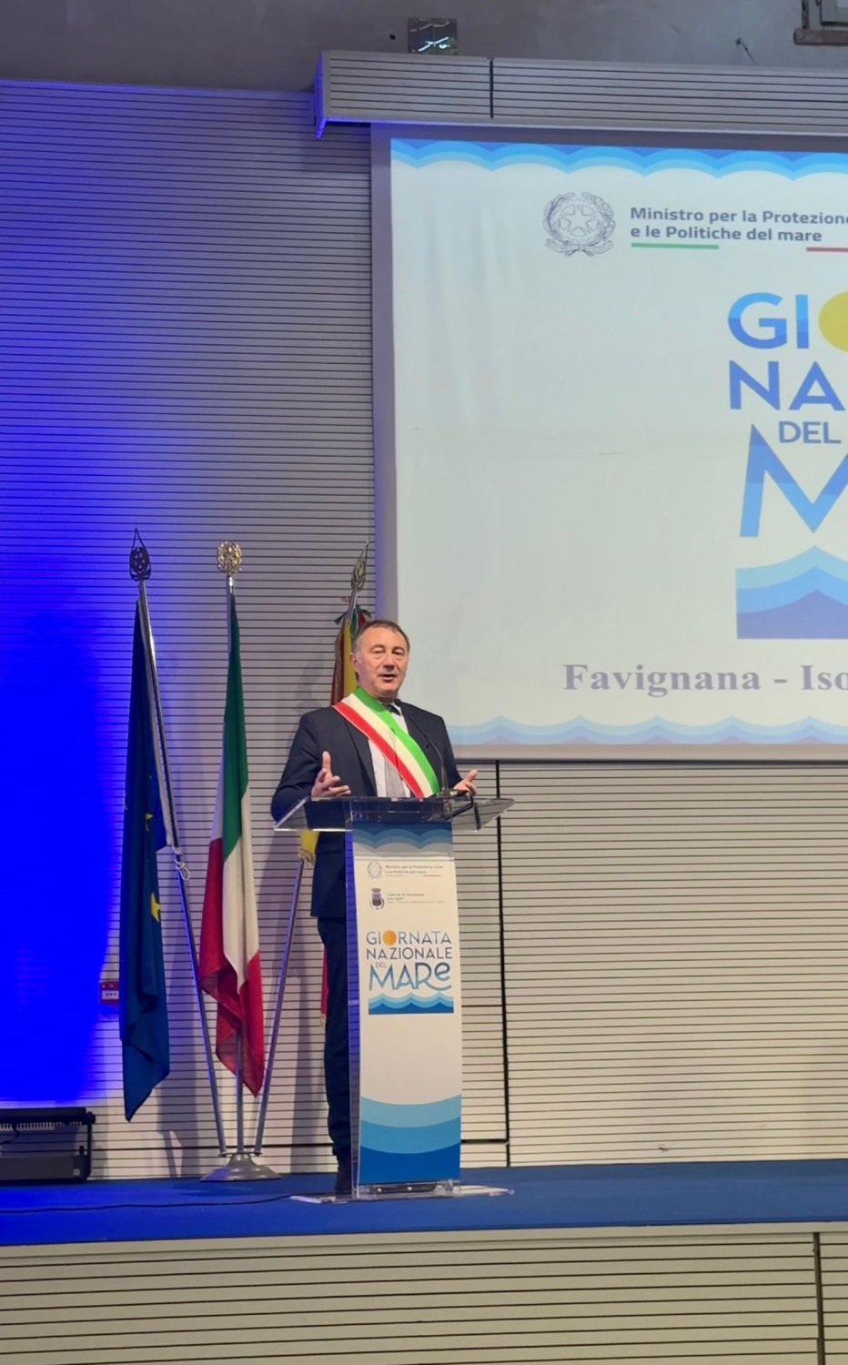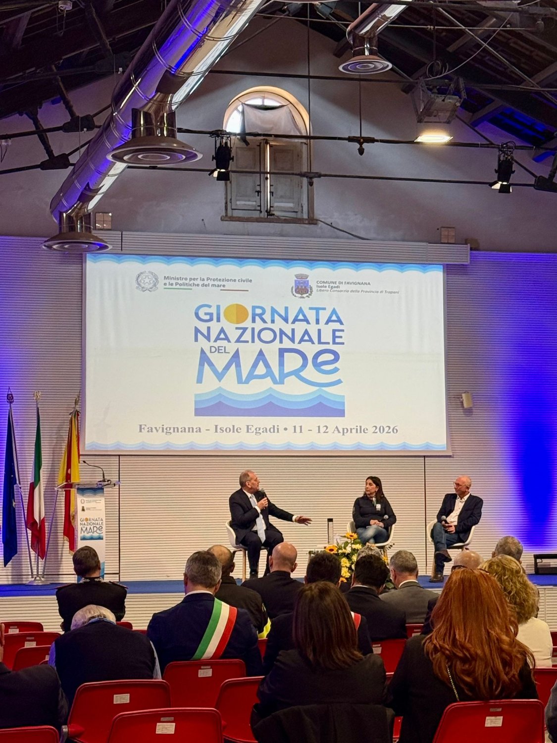 Una mattinata luminosa, tra il blu intenso del mare e il bianco delle architetture dell’isola, ha fatto da cornice a Favignana per la Giornata nazionale del mare. Allo storico Stabilimento Florio, insieme a studenti, cittadini e operatori del territorio, erano presenti numerose autorità: il ministro Nello Musumeci, l’assessore regionale al Territorio e Ambiente Giusy Savarino, il prefetto, i sindaci delle isole e rappresentanti delle istituzioni locali, gli studenti e i bambini. Un appuntamento che ha unito momento istituzionale e partecipazione collettiva, trasformando la celebrazione in un’occasione concreta di confronto sullo stato di salute del mare e sul futuro delle comunità isolane.