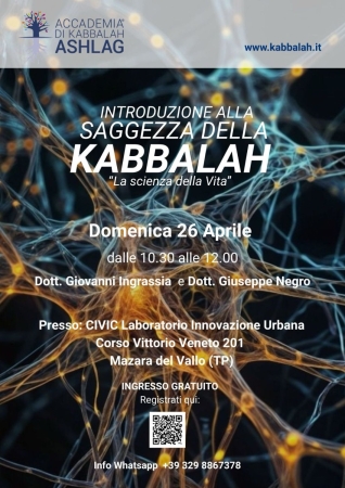 Domenica 26 aprile, dalle ore 10.30 alle 12.00, al Civic Center di corso Vittorio Veneto 201 a Mazara del Vallo, si terrà un incontro introduttivo alla saggezza della Kabbalah.