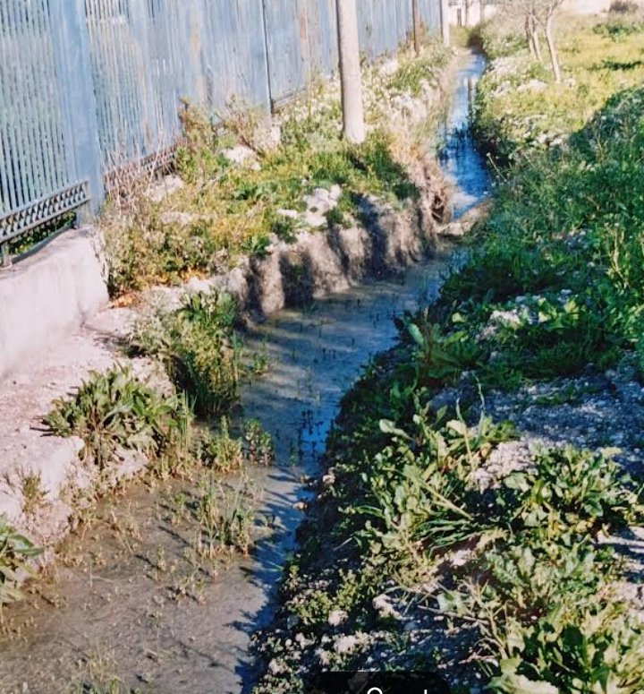 Con il rifacimento del muro a secco della Villa Genna, venne collocato alla base di questo un cordolo cementizio che tuttora impedisce il deflusso verso il mare. Nelle stagioni con abbondante piovosità si crearono allagamenti della Villa ( foto 3)senza aver previsto alcun canale che convogliasse le acque verso il mare. L'emergenza allora suggerì di realizzare un canale a cielo aperto alla base della recinzione della Villa con la proprietà Piazza. Solo nei primi due anni il sistema resse e si dimostrò funzionale ( Foto 4). Poi, per assoluta mancanza di manutenzione, si lasciò crescere nell'alveo del canale tutta una serie di vegetazione con arbusti, palme, erbe varie e relativo fogliame mai rimosso, che adesso provoca perdurante ristagno delle acque con notevoli danni alle colture e condizioni di eccessiva umidità del suolo che infirma le strutture degli immobili esistenti (foto 5).