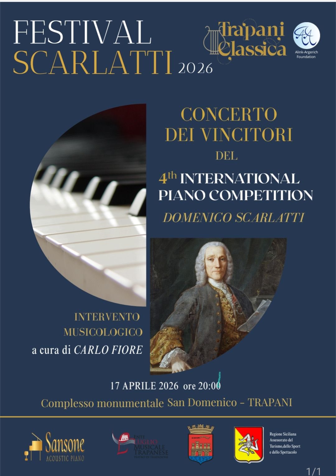 La stessa giornata proseguirà in serata, alle ore 20.00, al Complesso di San Domenico, con il concerto di gala che chiuderà la quarta edizione dell’International Piano Competition “Domenico – Città di Trapani”. Sul palco si esibiranno i pianisti premiati, protagonisti di una competizione che negli anni ha conquistato un posto di rilievo nel panorama musicale internazionale.