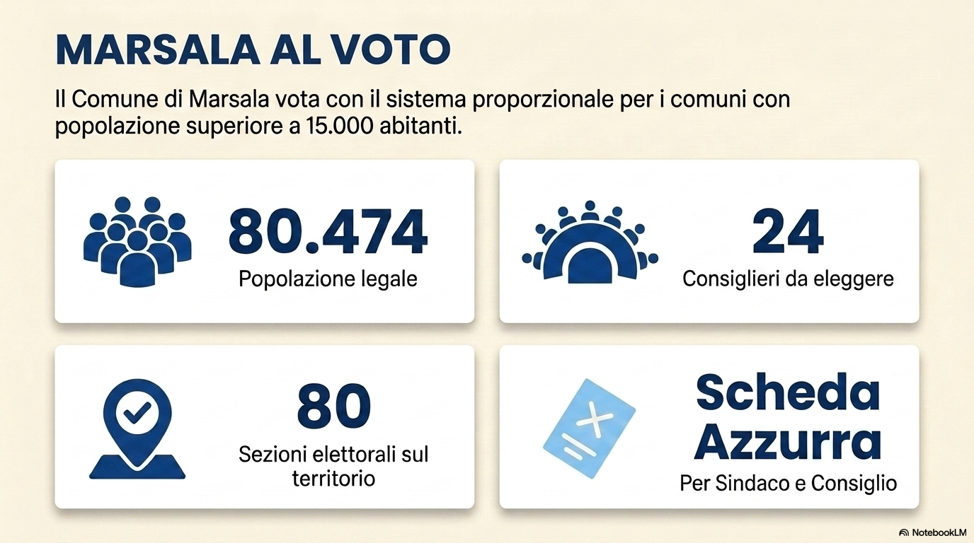 Quando si vota? Dove? Come funziona il voto? Com’è fatta la scheda? Gli stranieri possono votare? Come ci si può candidare? Le elezioni amministrative a Marsala sono alle porte, manca poco più di un mese e la città sarà chiamata a decidere da chi sarà amministrata per i prossimi cinque anni. Sul sito del Comune sono presenti tutti i documenti, i moduli, le leggi, le informazioni, rigorosamente in burocratese, sul voto. Li abbiamo semplificate. Ecco, quindi, una guida completa che riassume tutte le informazioni relative alle elezioni amministrative di Marsala del 24 e 25 maggio 2026.