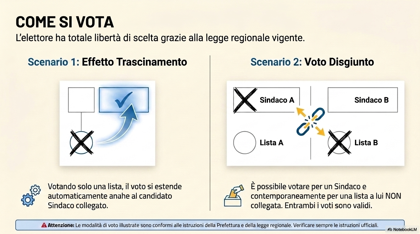 Voto disgiunto: è possibile votare per un candidato Sindaco e contemporaneamente per una lista a lui non collegata.