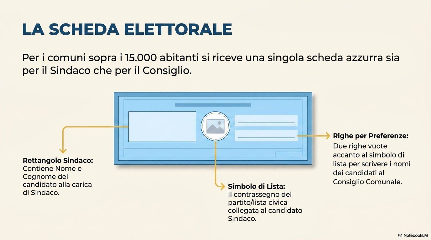 COME SI VOTA Per i comuni sopra i 15.000 abitanti, l'elettore riceve una scheda di colore azzurro e ha diverse opzioni: