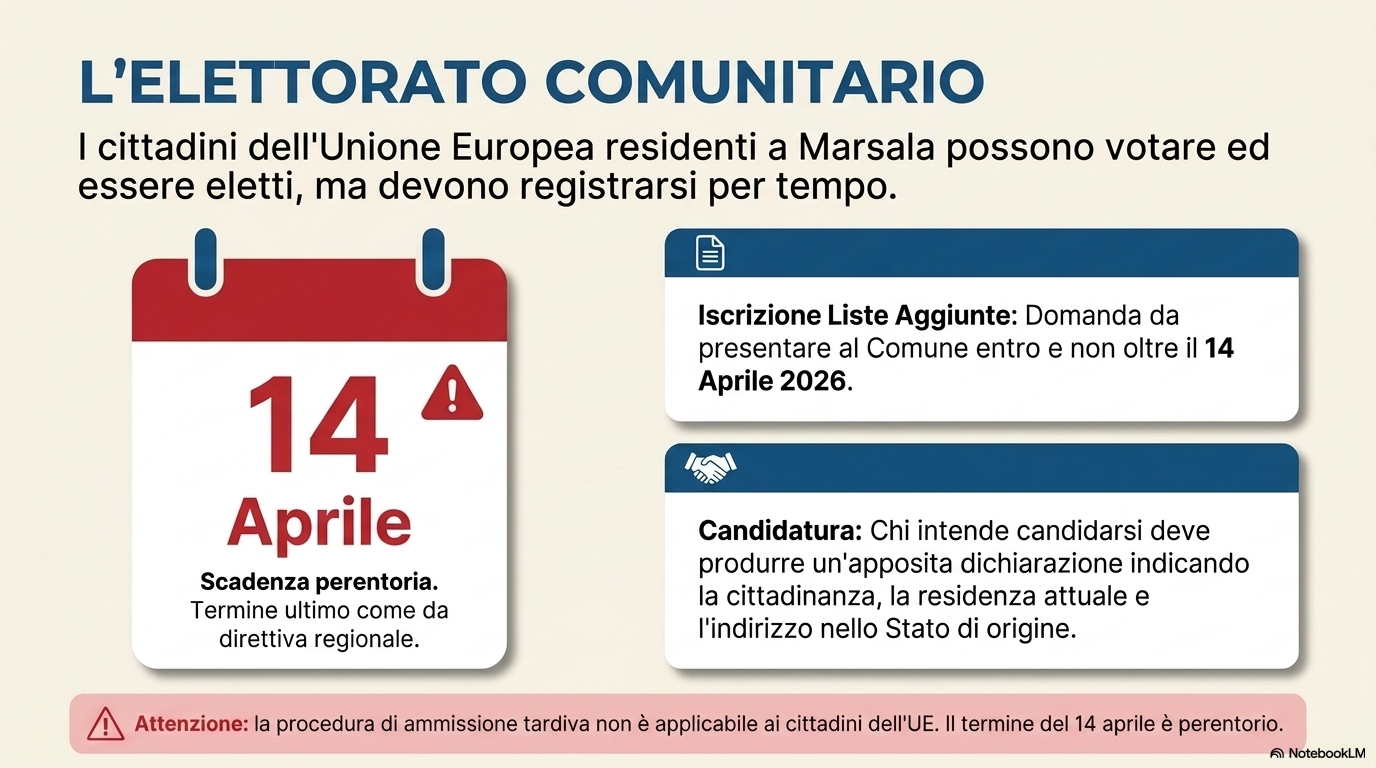 POSSONO VOTARE I NON ITALIANI? I cittadini UE residenti a Marsala possono votare per il Sindaco e il Consiglio Comunale se iscritti nelle apposite liste elettorali aggiunte.