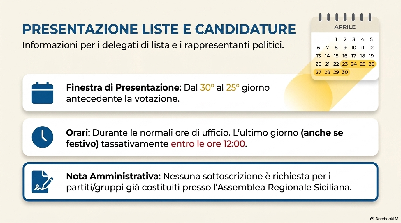 PRESENTAZIONE DELLE LISTE La presentazione delle liste per le elezioni amministrative a Marsala segue una procedura rigorosa definita dalle leggi regionali siciliane e dalle recenti norme sulla trasparenza.