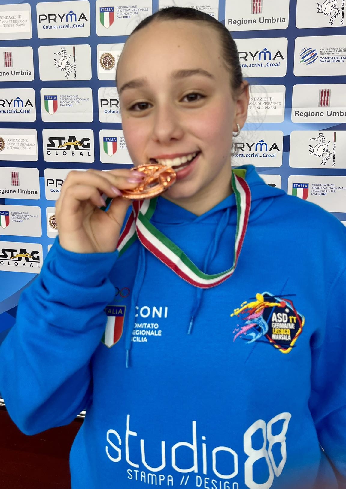 Tennis Tavolo: la Germaine Lecocq TT Fsc Curatolo Marsala vince il Campionato di serie B1 ed approda in A2. La società lilibetana, appena terminata l'ultima sfida di campionato a Vasto vinta per 5 a 3, e per la classifica avulsa giunta seconda per un solo set di differenza nei confronti degli stessi abruzzesi, ha presentato ricorso avverso al fatto che il giocatore spagnolo della Spartan Vasto Jose Carlos Guillot, ha abbandonato il campo di gioco durante il match uscendo dalla palestra e non rientrando sino al termine della sfida. Per regolamento un giocatore non può lasciare il "terreno di gioco" pena la squalifica del Team, un errore che ha prodotto la squalifica dei padroni di casa e che lancia i lilibetani di capitan Caprì in cima alla classifica da solitari e consegnando loro la promozione in serie A2. Nel frattempo altro successo del settore giovanile: ai Campionati Italiani la Germaine Lecocq nel doppio femminile conquista la medaglia di Bronzo grazie alla Super Clara Cumbo. Oggi (ndr) i singolari in cui oltre la Cumbo gareggerà anche Federico Bellissimo. In foto Clara Cumbo.