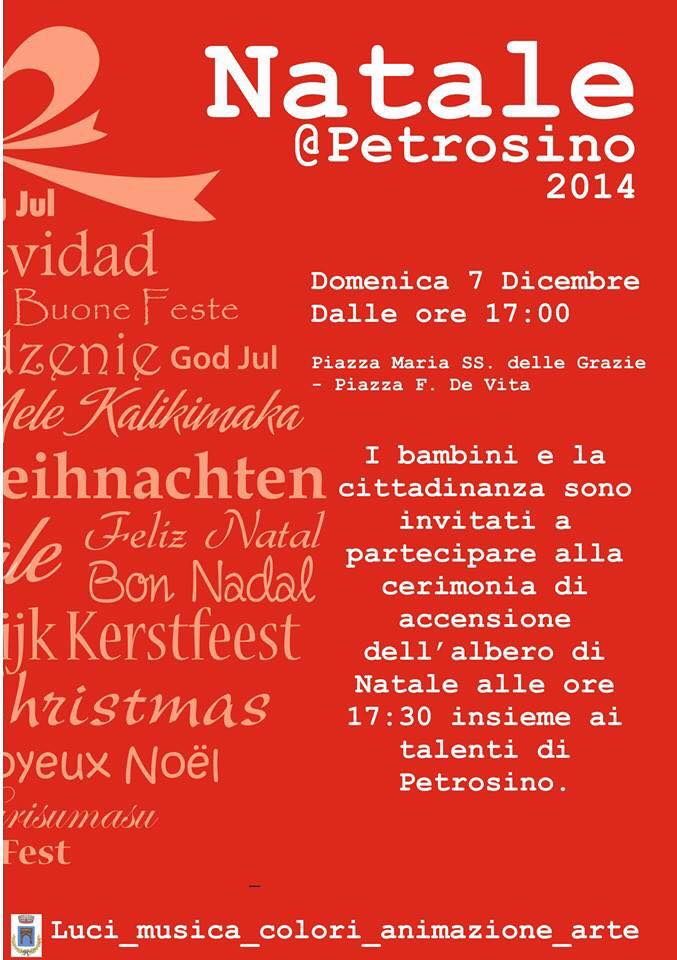 Domenica 7 dicembre, dalle ore 17.00, in piazza Maria SS. delle Grazie e viale F. De Vita a Petrosino, la manifestazione “Accendiamo il Natale”. Un momento di festa, musica e colori, di promozione dell’artigianato locale e di aggregazione per i bambini e tutti i cittadini di Petrosino che darà il via alle festività natalizie con l’accensione dell’albero in piazza, e delle luci lungo il viale. Protagonisti dell’evento, che vedrà la partecipazione del sindaco e di tutta l’amministrazione comunale, saranno i giovani talenti di Petrosino che quest’anno si sono distinti nelle diverse discipline sportive e musicali: Silvia Pipitone, amazzone, campionessa regionale di salto ad ostacoli; Costanza Fasulo, giovanissima e talentuosa cantante; Antonino Maniscalco e Giuseppe De Vita, campioni italiani di boxe; Giusy Barraco, campionessa paralimpica di nuoto e infine Claudio Lo Cicero, giocatore della nazionale italiana di pallamano.