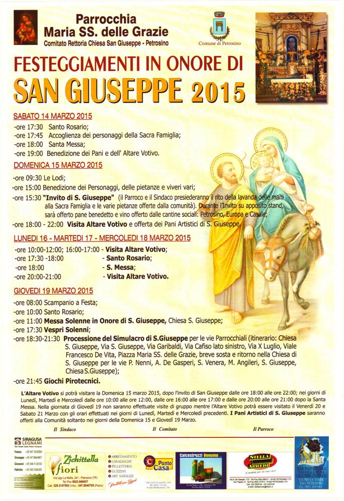 Una festa antichissima che ogni anno coinvolge l’intera comunità, con la partecipazione delle scuole, le donne e i bambini impegnati nella preparazione dei pani e degli altari di San Giuseppe. I festeggiamenti, organizzati dalla Parrocchia Maria SS. Delle Grazie, dalla Rettoria della Chiesa di San Giuseppe di Petrosino, e con il Patrocinio del Comune, riprendono l’antica tradizione petrosilena, racchiudendo il valore sociale di unione della comunità, e religioso, con la carità e la condivisione del pane che, con l’invito di San Giuseppe viene offerto alle famiglie più bisognose.