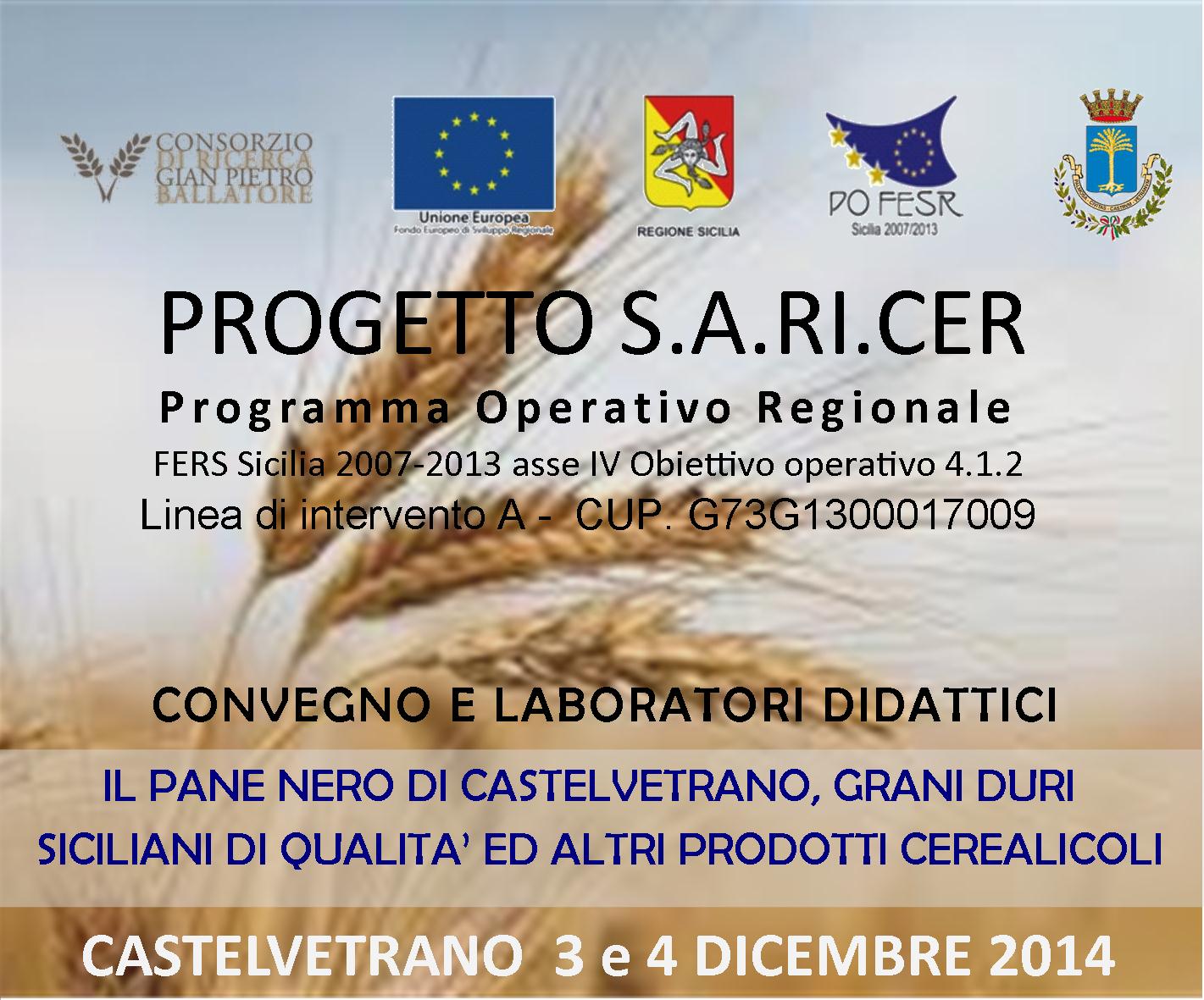 L’Associazione ‘A DISA su incarico del Comune di Castelvetrano e in collaborazione con il Consorzio di Ricerca Gian Pietro Ballatoreente ente capofila nell’ambito del Progetto S.A.RI.CER (Servizi Avanzati per la Ricerca nella Filiera Cerealicola) Programma Operativo Regionale POFSSR Sicilia 2007/2013 Asse IV obbiettivo operativo 4.1.2 Linea di intervento a CUP. G73G1300017009 e a cui aderisce anche il Consorzio CO.RI.BI.A, ha organizzato una due giorni intensa di Laboratori e Seminari dedicata al tema del Pane nero di Castelvetrano e dei grani duri siciliani.