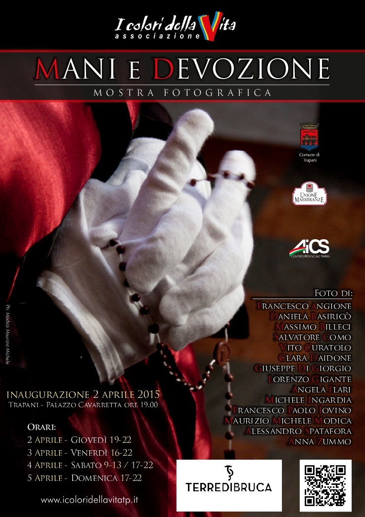 In occasione della Settimana Santa, l'Associazione “I Colori della Vita” di Trapani in collaborazione con il Comitato Provinciale AICS di Trapani organizza, una mostra fotografica collettiva dal tema “Mani e Devozione”.