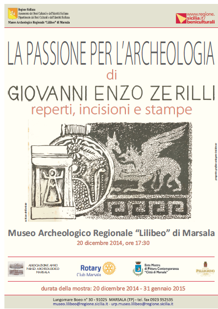 Sabato 20 dicembre, alle ore 17.30, sarà inaugurata al Museo Archeologico Regionale “Lilibeo” di Marsala una mostra dal titolo La passione per l’archeologia di Giovanni Enzo Zerilli. Reperti, incisioni e stampe.