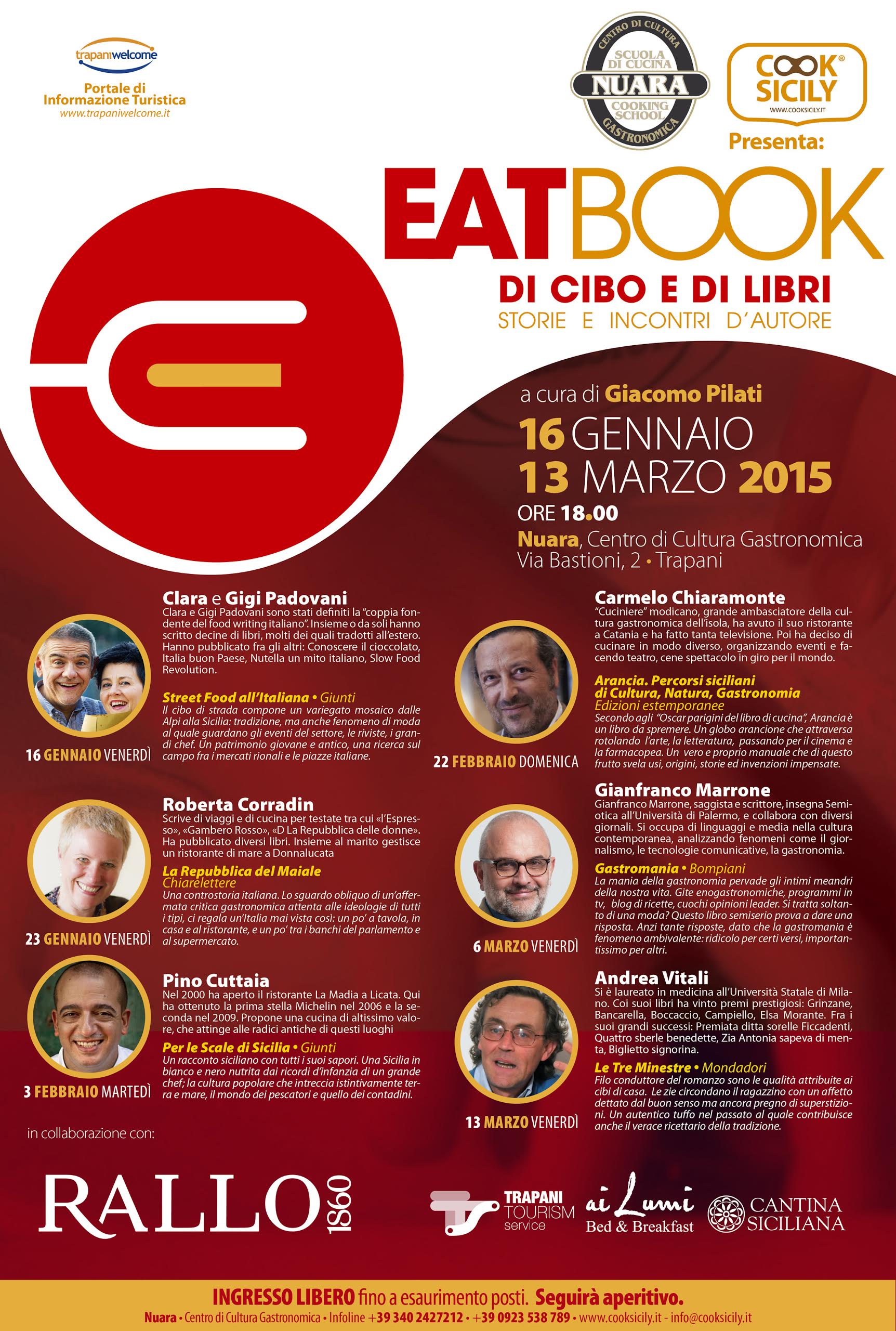 Un affascinante e goloso viaggio in compagnia di chef, giornalisti, scrittori ma soprattutto grandi appassionati di cucina, protagonisti della rassegna “Eatbook, di Cibo e di Libri” curata dall'autore Giacomo Pilati, in programma a partire dal 16 Gennaio al Centro di Cultura Gastronomica “Nuara - Cook Sicily” in via Bastioni 2 -Trapani.