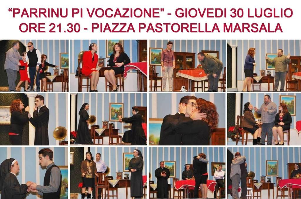 L'associazione teatrale "Nuovi Orizzonti" di Marsala, giovedì 30 luglio rappresenterà la commedia brillante "Parrinu pi vocazione" a Pastorella, all'interno della VII edizione di "Re...Estate a Pastorella, con inizio alle ore 21.30. Ingresso libero.
