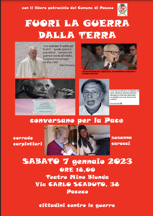di Paceco si tingerà dei colori della Pace, contro ogni guerra, per la libera convivenza dei popoli. Testi e musiche contro la guerra.