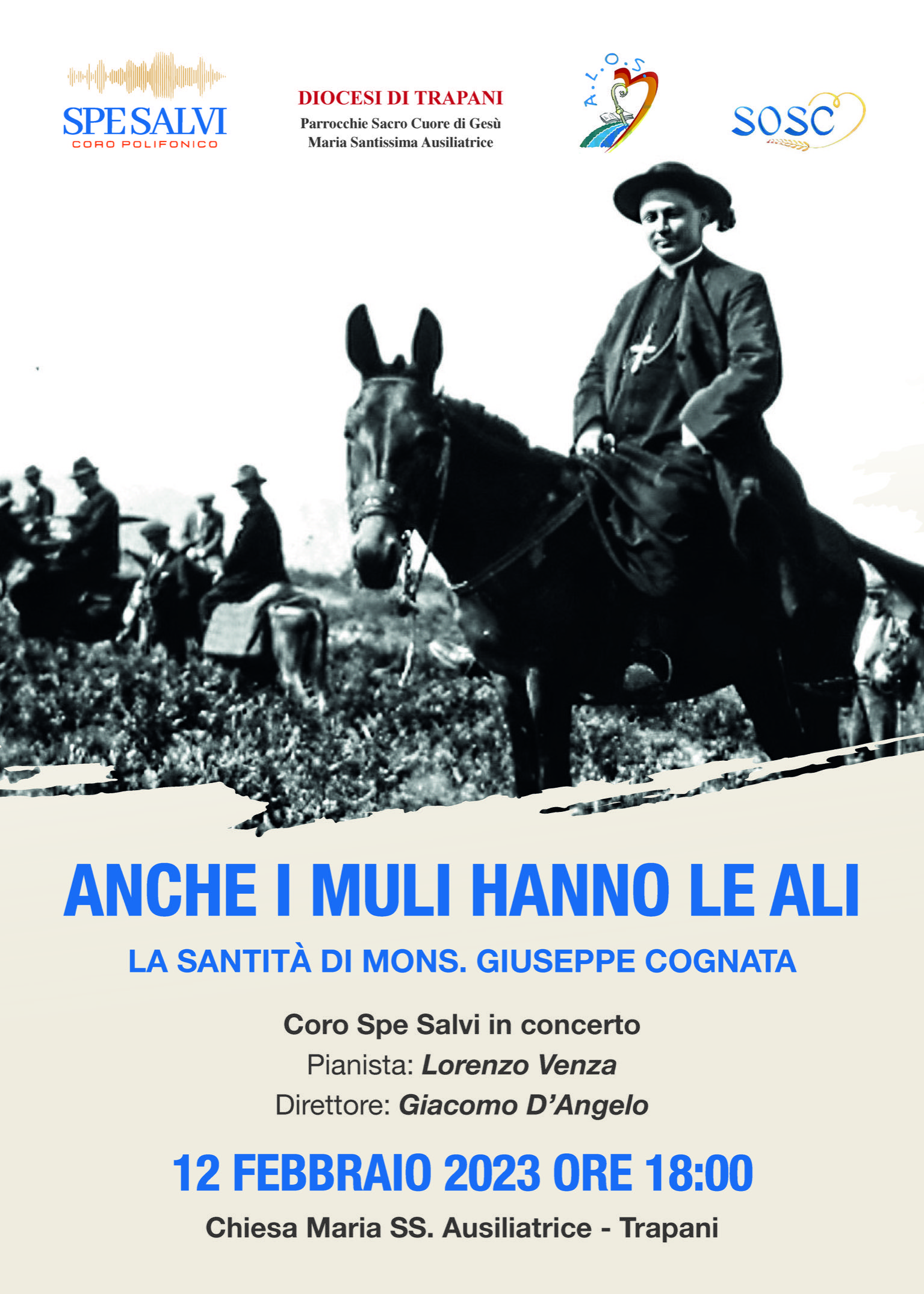 in occasione dei cento anni dalla sua fondazione, si terrà il concerto Anche i muli hanno le ali - La santità di Mons. Giuseppe Cognata a cura del coro polifonico Spe salvi.