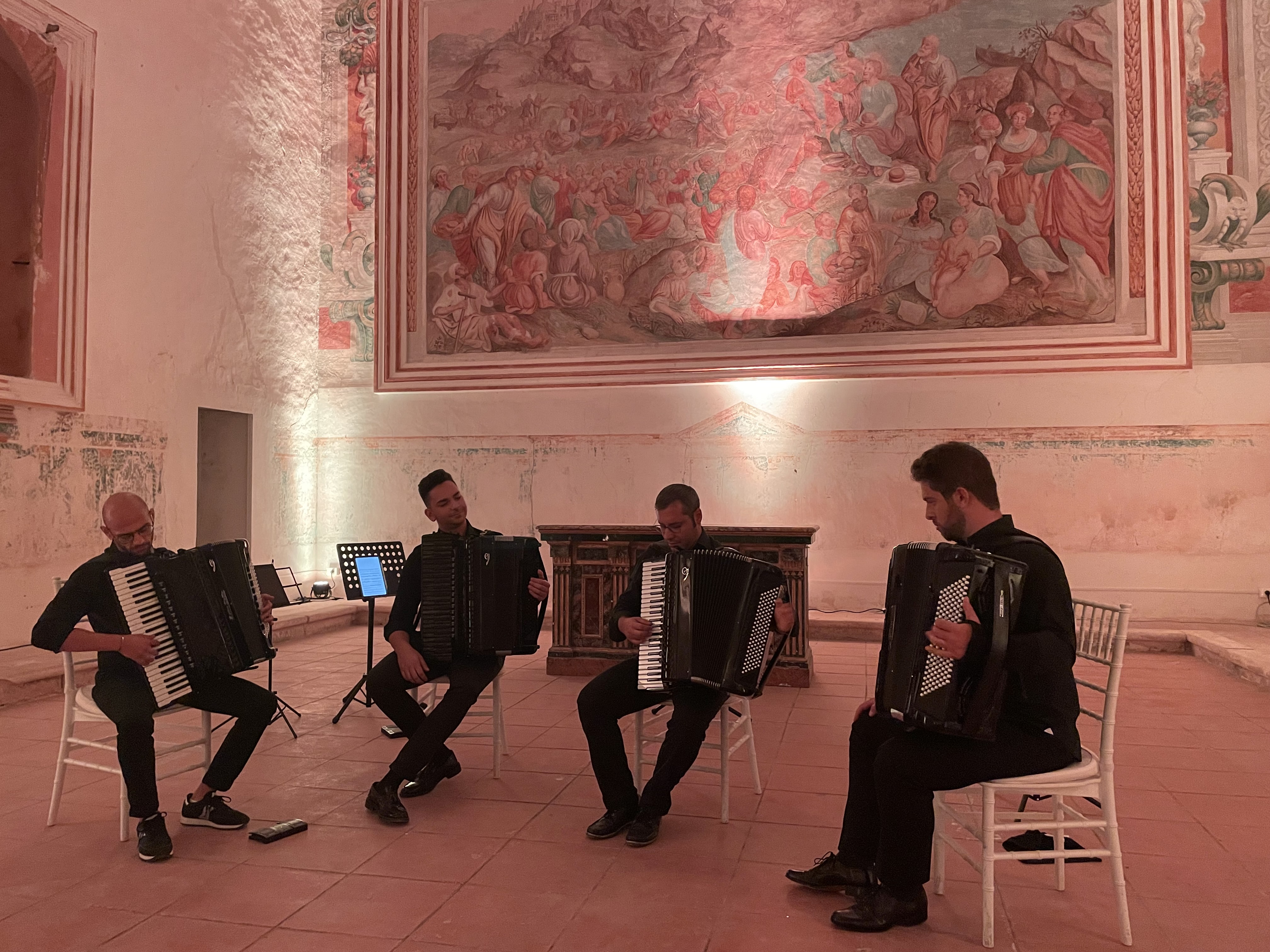 Il quartetto — composto da Giuseppe Sirena, Salvatore Vitale, Alessio Di Dio e Carmelo Lia — esplorerà le potenzialità espressive dello strumento, interpretando musiche di Hermosa, Vivaldi, Zolotarev, Händel, Gardel e Piazzolla. Un viaggio sonoro che attraversa secoli e generi, dal tango alla musica barocca, per restituire alla fisarmonica lo spazio che merita nella scena concertistica. Il progetto nasce nel 2018 all'interno del Conservatorio “Alessandro Scarlatti” di Palermo, dove insegna Carmela Stefano, tra le più attive concertiste italiane di fisarmonica classica, con alle spalle una lunga esperienza in ambito europeo. È proprio grazie alla sua guida che i Virtuous Flair si distinguono per originalità e ricercatezza, presentandosi in una formazione inconsueta: non un solista con orchestra, ma un ensemble di sole fisarmoniche che dialogano tra loro. Il concerto, a ingresso libero fino a esaurimento posti, è realizzato in collaborazione con il Conservatorio “Scarlatti” e la Compagnia Figli d’arte Cuticchio, con il sostegno dell’Assessorato regionale ai Beni culturali.