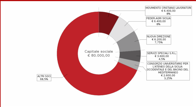 Il capitale sociale del Gal ammonta a 80 mila euro ed è suddiviso tra 88 soci, ma la distribuzione delle quote non è affatto omogenea. Accanto a una miriade di soggetti con partecipazioni minime, emergono infatti alcuni blocchi di peso significativo, in grado di incidere in modo determinante sugli esiti assembleari. Il caso più evidente è quello del Movimento Cristiano Lavoratori e di Federagri Sicilia, che detengono ciascuno l’8% del capitale: insieme arrivano al 16%, una quota molto elevata in un sistema che dovrebbe garantire equilibrio tra i diversi attori del partenariato. Subito dopo si colloca l’associazione Nuova Direzione, con il 7,75%, seguita da Servizi Speciali Srl (4,5%) e dal Consorzio universitario per l’Ateneo della Sicilia occidentale (3,25%).