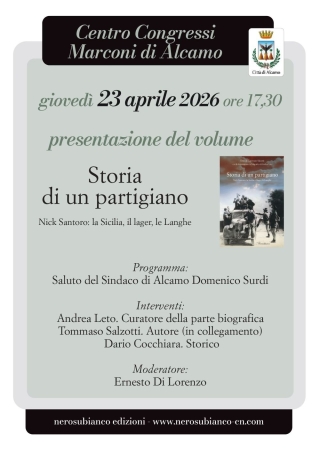 Una vicenda che attraversa la Sicilia, i lager nazisti e le Langhe piemontesi. Sarà presentato giovedì 23 aprile alle 17.30, al Centro Congressi Marconi, il volume “Storia di un partigiano – Nick Santoro: la Sicilia, il lager, le Langhe”, pubblicato da Nerosubianco Edizioni.