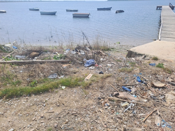 Le foto che accompagnano questo articolo mostrano cumuli di plastica, bottiglie, sacchetti, legni e rifiuti accumulati tra le canne e sulla battigia. In alcuni scatti si vedono tratti di spiaggia coperti da detriti e sporcizia, mentre nei pressi dell’acqua, accanto a piccole imbarcazioni ormeggiate, si notano rifiuti sparsi e vegetazione incolta. Un contrasto evidente tra il paesaggio naturale e lo stato di abbandono.
