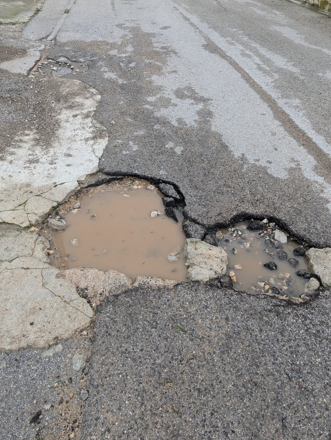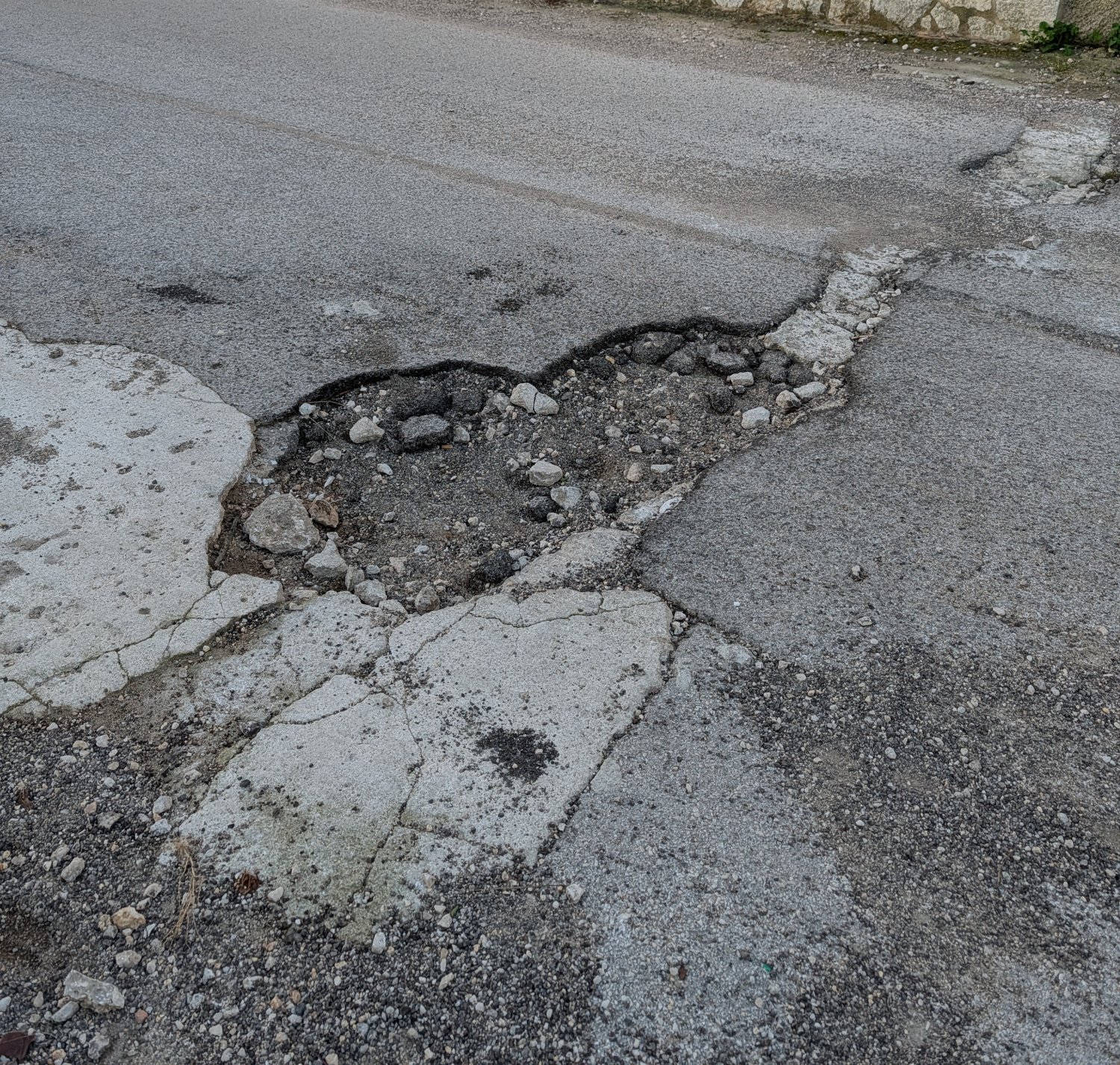È il 2024. Nessuno ripara la buca. Nel frattempo lei si allarga.