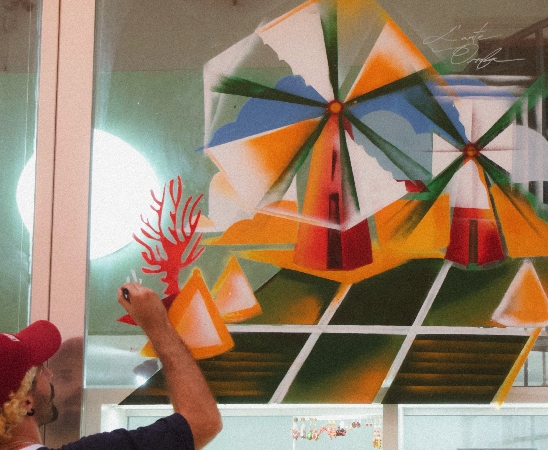 I protagonisti sono quattro artisti italiani – Hazkj, Noeyes, Rise the Cat, Pixa – che, lavorando fianco a fianco con i commercianti, reinterpretano ogni spazio secondo il linguaggio personale di ciascuno: figure geometriche, campiture piatte, simboli sociali, segni astratti.