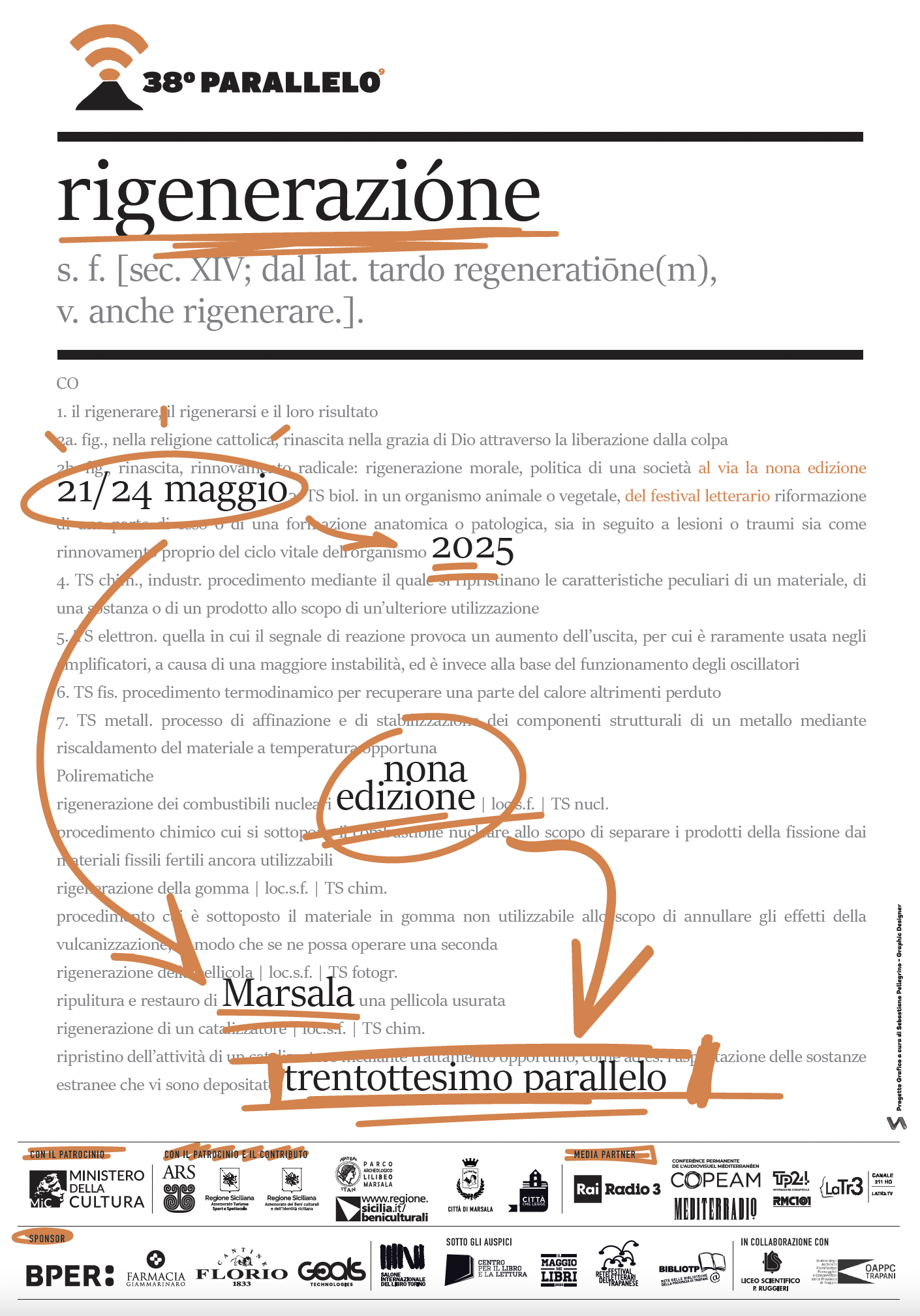 Il festival e il suo tema: rigenerazione. Lo spettacolo di Massini chiude la nona edizione di “38° Parallelo”, il festival che da nove anni porta a Marsala il meglio del pensiero critico, dell’editoria e della narrazione. Si svolgerà dal 21 al 24 maggio e il suo tema quest’anno è “Rigenerazione”, intesa come cura dei luoghi e delle relazioni, come rinascita possibile nel linguaggio, nei gesti, nella comunità.