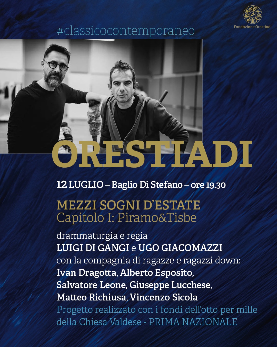 GIBELLINA - Le Orestiadi di Gibellina, con la loro 44ª edizione, si confermano come punto fermo del dialogo tra arte contemporanea e identità del territorio. Il festival propone anche quest'anno progetti originali che raccontano la rinascita culturale della città. Il 12 luglio è atteso il ritorno di Ascanio Celestini con il suo nuovo spettacolo Poveri Cristi, una narrazione intensa dedicata a chi non ha voce, se non quella della pietà. Nella stessa giornata, alle 19.30, Ugo Giacomazzi e Luigi Di Ganci porteranno in scena Mezzi sogni d’estate, con una compagnia composta da giovani attori e attrici con sindrome di Down.